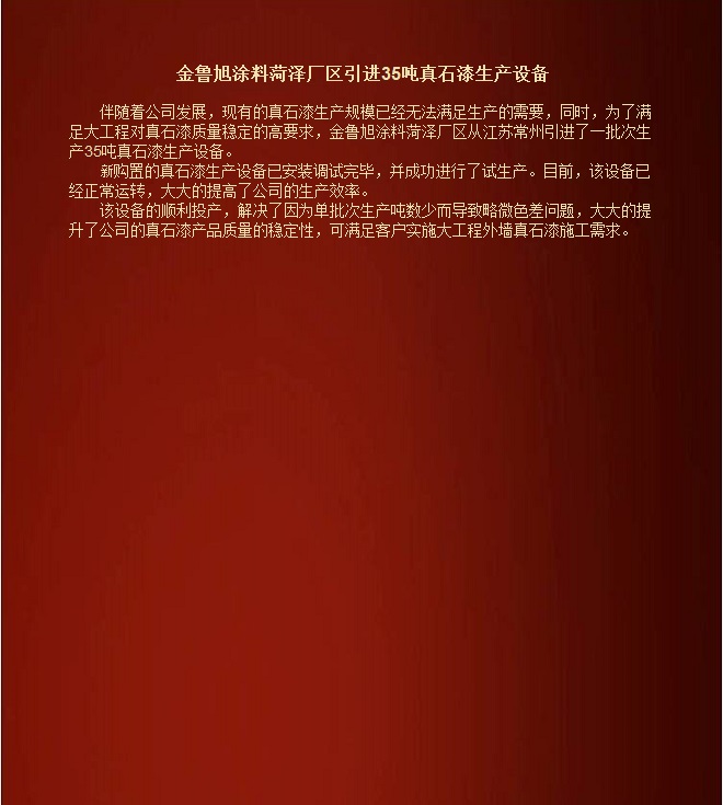 金魯旭菏澤廠區(qū)引進35噸真石漆生產(chǎn)設(shè)備